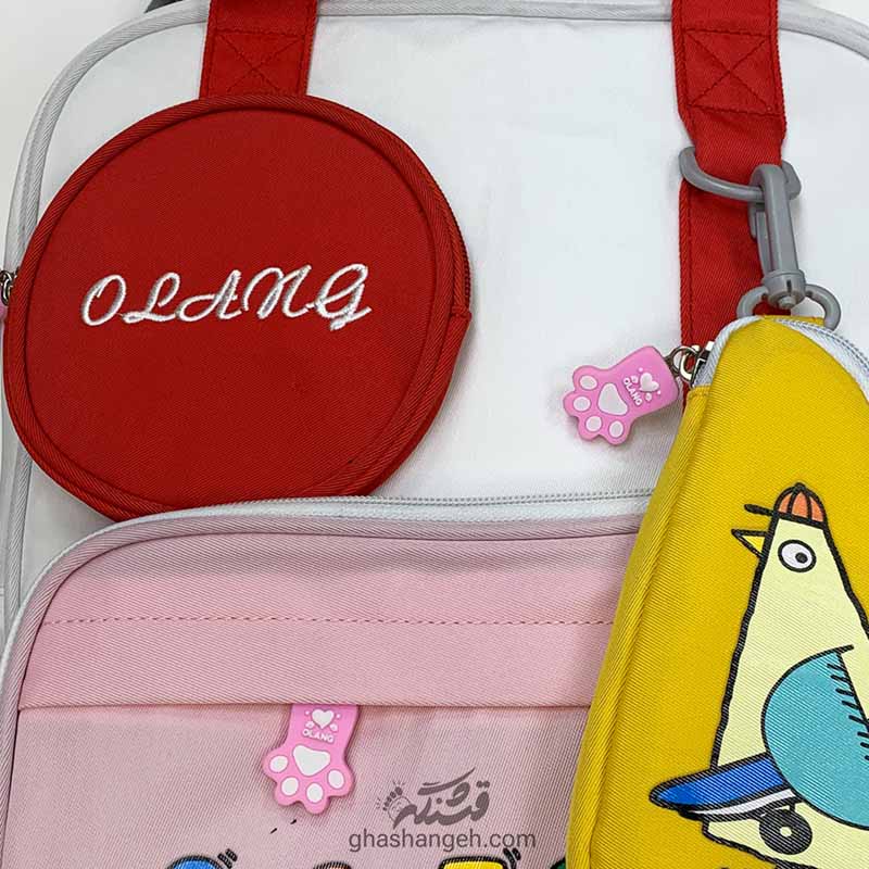 کوله‌پشتی Olang صورتی زرد، انتخابی پرانرژی برای روزهای شلوغ مدرسه است. جنس برزنتی مقاوم و طراحی جذاب دارد.